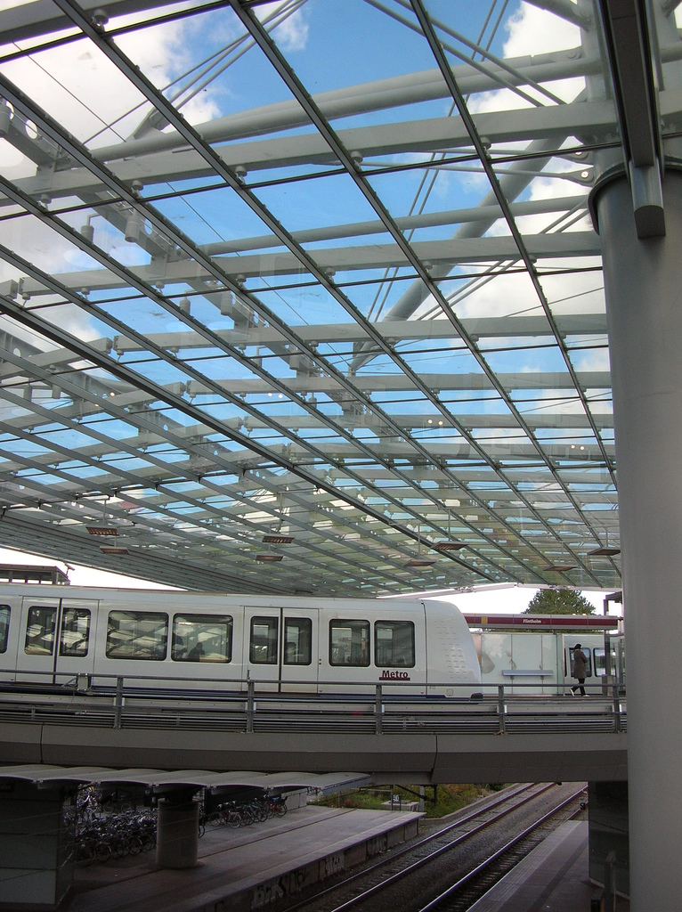 5000m2 dakconstructie bij het Flintholm Station, Kopenhagen, gebouwd met speciale profielen die lichtheid en sterkte garanderen. Alumeco leverde 50 ton aluminium profielen voor het project.