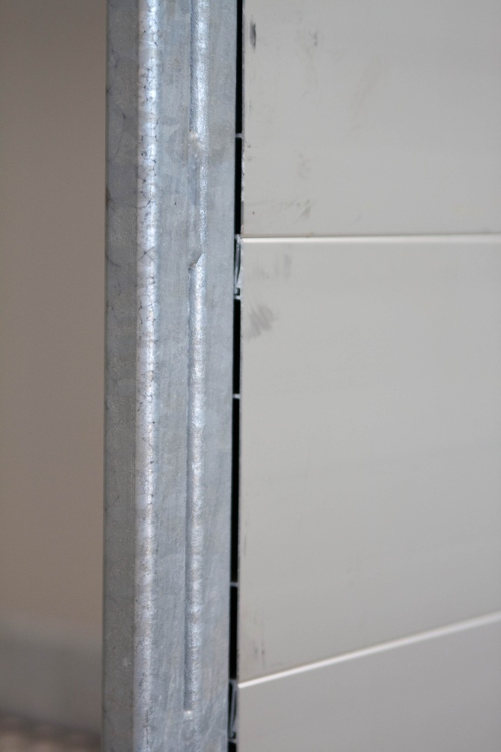 - Tegelijkertijd was het voor ons belangrijk dat wij met duurzaam materiaal zouden werken. Tevens gebruikten we enkele vlakke platen in combinatie met klikprofielen voor het inbouwen van de wanden.